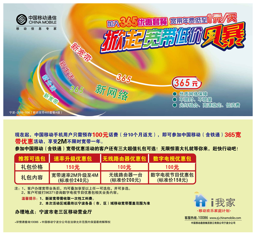 加入365優惠套餐 寬帶年費低至1元/天