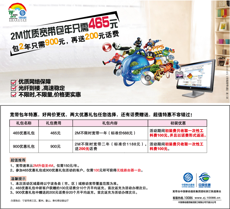 移動(dòng)寬帶包年特惠,兩大優(yōu)惠禮包任您選擇