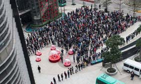 深圳一公司員工排隊領紅包 從39樓到大廈外