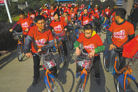 昨天中午,寧波光明眼病醫院門口聚集了100多位騎行志愿者,他們身著統一服裝整裝待發。這些志愿者或是近視患者,或是喜歡戶外活動,崇尚低碳環保者。昨天他們集聚一堂,只為了一個目標“為光明,永不止步”。據了解,這次騎行活動是寧波光明眼病醫院攜手寧波公共自行車開展的以“光明視界,陽光騎行”為主題的愛心公益行動。