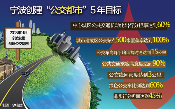 在4月4日的會議上,我市明確了今后五年創建“公交都市”的目標:構筑以軌道交通和中運量公交為骨干、常規公交為主體、出租汽車為補充、公共自行車為延伸的多模式、一體化城市公共交通體系,確保公共交通機動化出行分擔率達到60%(公共交通日均客運量達到240萬人次,非步行方式分擔率達到45%),建成國內先進的公交都市示范城市,基本確立公共交通在城市交通中的主導地位,使公共交通為緩解交通擁堵提供有效支撐,成為公眾基本出行的首選方式。