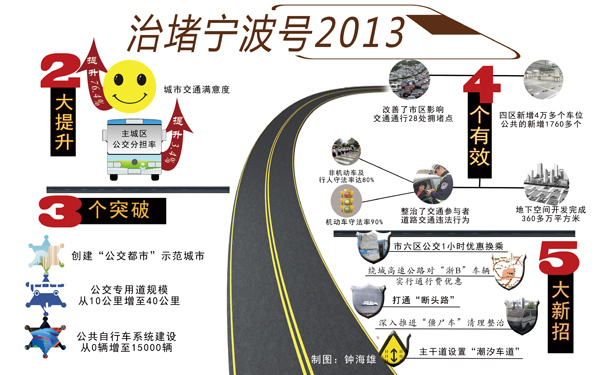 今年是五年治堵工作深化推進之年,也是我市五年公交都市創(chuàng)建第一年。寧波市將以公交都市創(chuàng)建為抓手,積極推動城市治堵目標實現(xiàn)。為此,市政府創(chuàng)新工作方式方法,整合既有治堵辦與公交都市創(chuàng)建辦兩辦力量,統(tǒng)一召開工作會議,提出工作目標和舉措,分解工作任務,下達治堵指標進行目標責任考核。