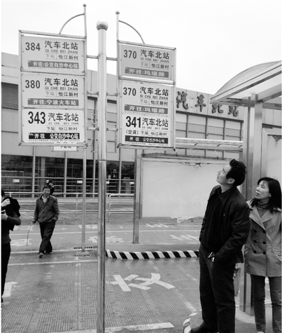 記者了解到,此前交通部門為了方便市民出行,為汽車北站臨時站配備12條始發、途經的公交車線路,可是,真正在汽車北站臨時站門口公交站停靠的,只有384路、370路、341路、380路、343路共5條線路。