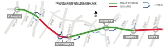北環(huán)高架(康橋南路—望海南路)段受機(jī)場航空環(huán)境影響,部分高架橋梁尚未實(shí)施,目前正在磋商解決方案,暫不具備通車條件。