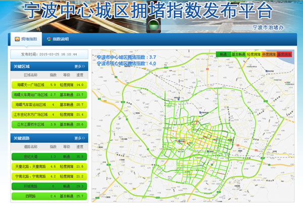 哪些區(qū)域堵車,哪條路堵車,堵車多嚴(yán)重……從4月1日開始,你可以通過查詢寧波交通擁堵狀況,合理規(guī)劃自己的出行。本次發(fā)布范圍包括市三區(qū)和鄞州中心區(qū)的主要道路、繞城高速和杭甬高速部分路段。目前已界定道路網(wǎng)絡(luò)主要包括9條城市快速路段,88條城市主干路段和583條城市次干路段,以及其它道路路段。每5分鐘數(shù)據(jù)更新一次。