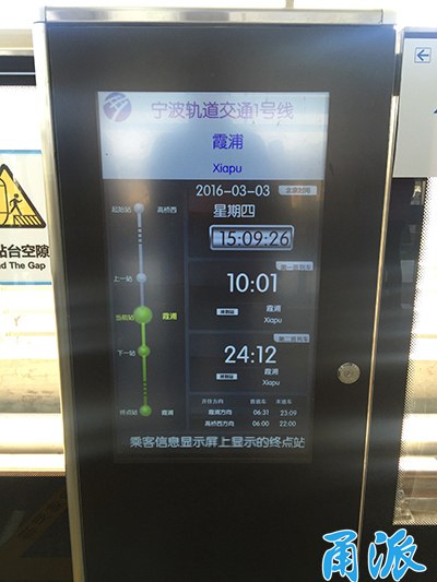 具體時間方面:15:12霞浦站開出,15:13到長江路站,15:15到中河路站;15:18到松花江路站;15:21到大碶站;15:24到邱隘站;15:31到寶幢站;15:36到五鄉站;15:40到邱隘站;15:42到東環南路站。這個時間僅供參考,不排除正式運營后會調整哦。