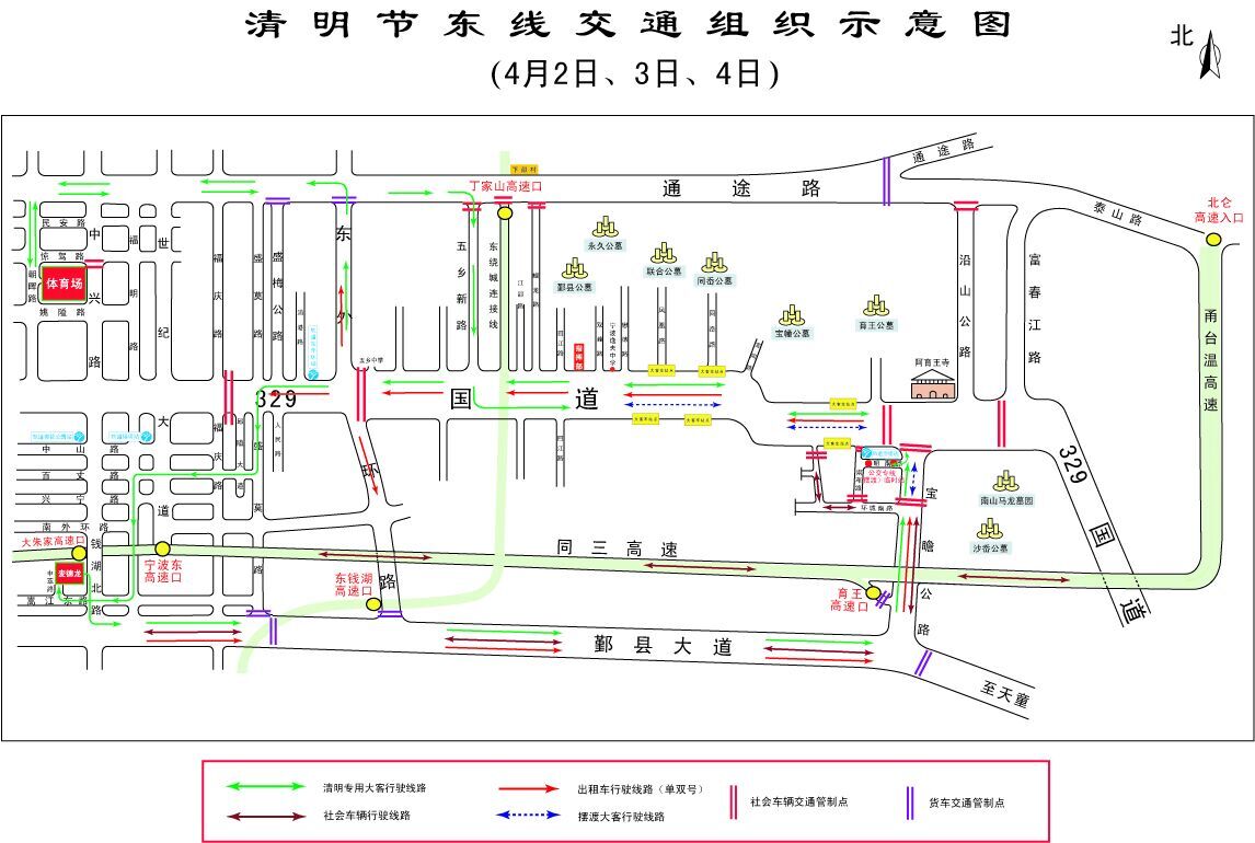 4、貨車和非掃墓客車禁止從高速公路鄞州東(原五鄉育王)收費站駛出。