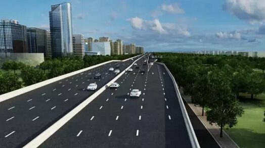 建設標準:全長約4.1公里,寬度68米,采用“主線+輔道”的建設形式。主線建設標準為城市快速路,設計車速80公里/小時;地面輔道建設標準為城市主干道,設計車速50公里/小時。