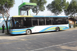 昨天起,我市177路公交車全部更新成超級電容無軌電車,車輛所經的部分車站也安裝了充電樁。