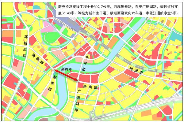 規(guī)劃顯示,新典橋位于鄞州區(qū)、海曙區(qū),西起鄞奉路,東至廣德湖路。工程道路等級為城市主干路,全長約700米,道路標(biāo)準(zhǔn)寬度36-48米。規(guī)劃雙向6車道,奉化江通航凈空5米。規(guī)劃的新典橋和一旁的長豐橋一道,將大大方便鄞州區(qū)和海曙區(qū)的互通往來。