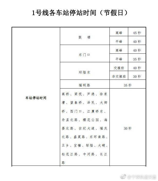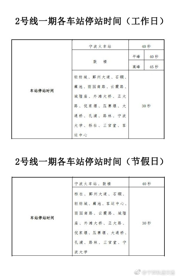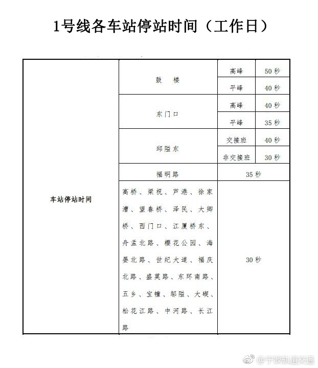寧波軌道交通今天發(fā)布消息,自2017年5月28日起,寧波軌道交通1號線和2號線一期優(yōu)化調(diào)整時刻表。行車間隔1號線工作日高峰時段為5分53秒、平峰時段為7分22秒;節(jié)假日高峰時段為6分09秒、平峰時段為7分22秒。2號線一期工作日高峰時段為5分53秒、平峰時段為7分33秒;節(jié)假日高峰時段為6分13秒、平峰時段為7分33秒。同時,對鼓樓站、東門口站、邱隘東站、客運中心站的停站時間進行調(diào)整。