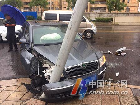 昨天下午2時左右,鄞州中心城區(qū)一路口,一輛灰色斯柯達(dá)轎車在行駛途中被前車給“坑”了。事故很簡單,它左側(cè)前方一輛淺黃色面包車突然變道,致使這輛斯柯達(dá)轎車避讓不及,一頭撞上一根15米高的路燈桿。這一撞,車內(nèi)的氣囊彈出,前保險杠斷裂,車頭右側(cè)嚴(yán)重?fù)p壞。當(dāng)然,最惱火的還是司機了,原以為又要自己負(fù)責(zé)了,畢竟是單向交通事故:“我正常行駛,面包車突然向右變道過來,別了我一下。為了躲車,打了一把輪,就直接撞上了。”