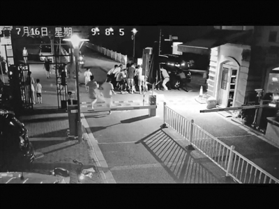 記者通過監(jiān)控錄像發(fā)現(xiàn),事故具體發(fā)生時間為前天晚上7點45分,抬車移出傷者過程不到一分鐘。