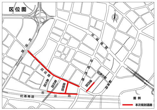 規劃區北至環城南路,東至南塘河,南至杭甬高速公路,西至機場路,規劃總用地面積307.65公頃。