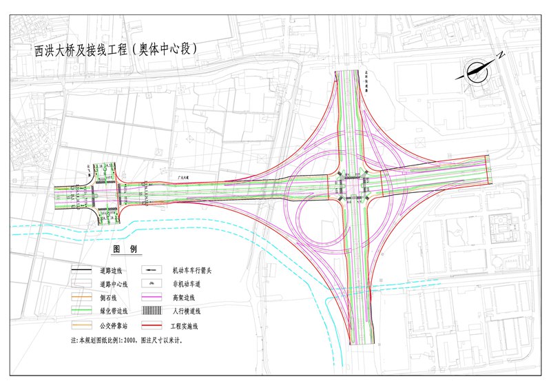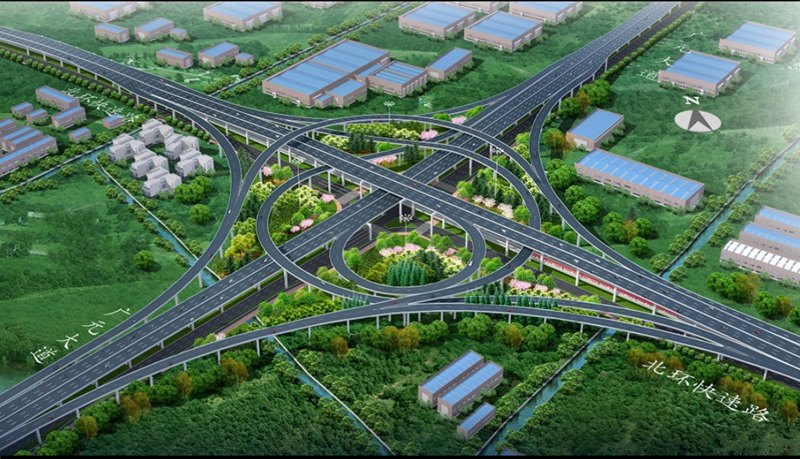 大橋共分為四個標段,其中IV標段位于江北區,為云飛路—北環快速路段,長度為932米,跨度為50米。值得一提的是,北環快速路節點采用五層“迂回半定向苜蓿葉”全互通立交,即快速路西間通過轉向道溝通,地面輔道平交燈控。