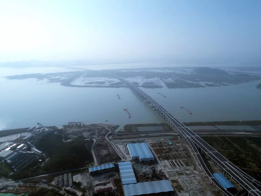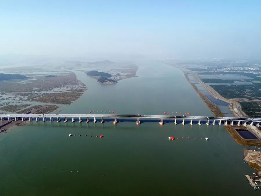 三門(mén)灣大橋今年6月24日傍晚順利實(shí)現(xiàn)海上全線貫通