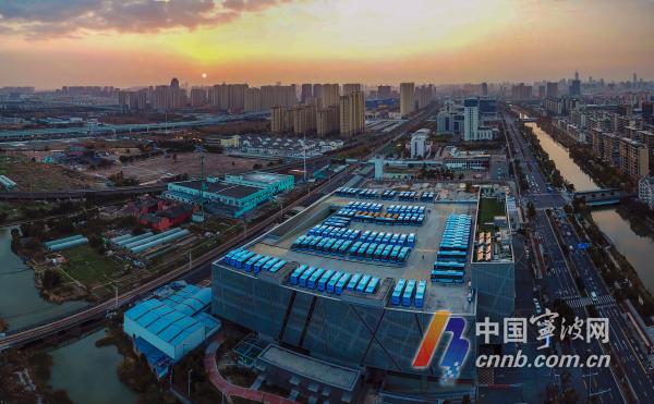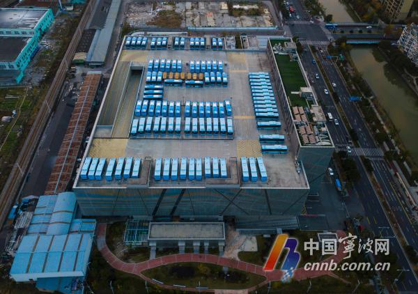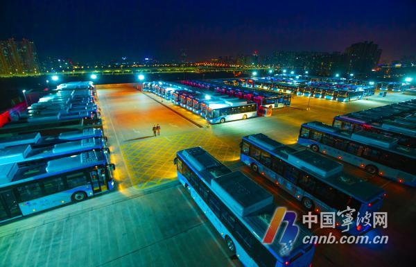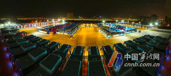 近日,又一批插電式混合動(dòng)力新能源公交車,抵達(dá)寧波公交集團(tuán)位于東部新城的一體化綜合停車場。昨晚,華燈初上,百余輛公交車整齊劃一地停放在立體停車場頂樓,宛如一部科技大片。