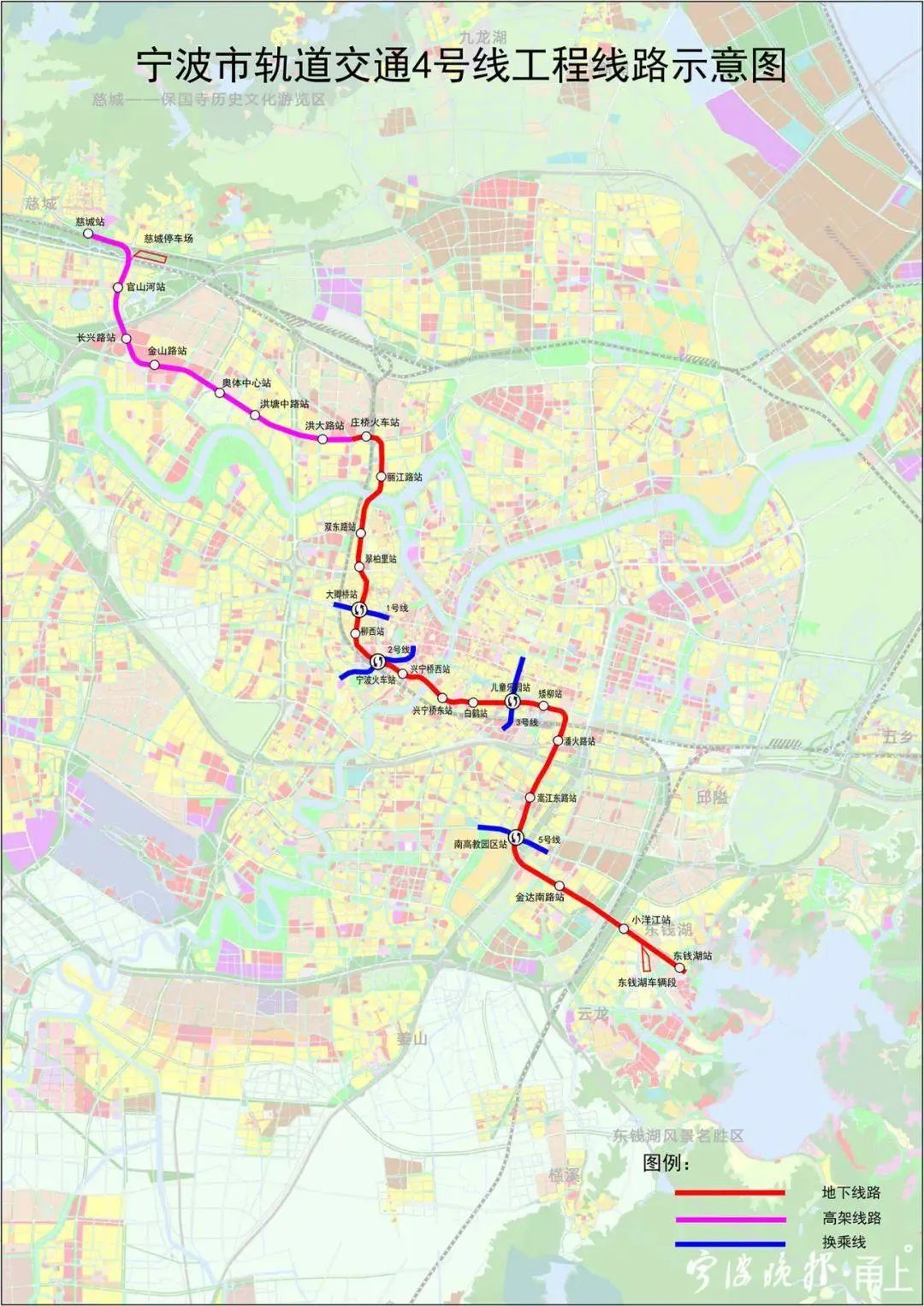 4號線連接慈城和東錢湖,全長約35.95公里,共設車站25座,是寧波市軌道交通第二輪建設規劃中的重要項目之一。
