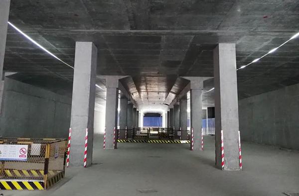 在海晏北路站地下空間,這里原本的基坑已經變成車站的“白坯房”,車站結構框架已成型。