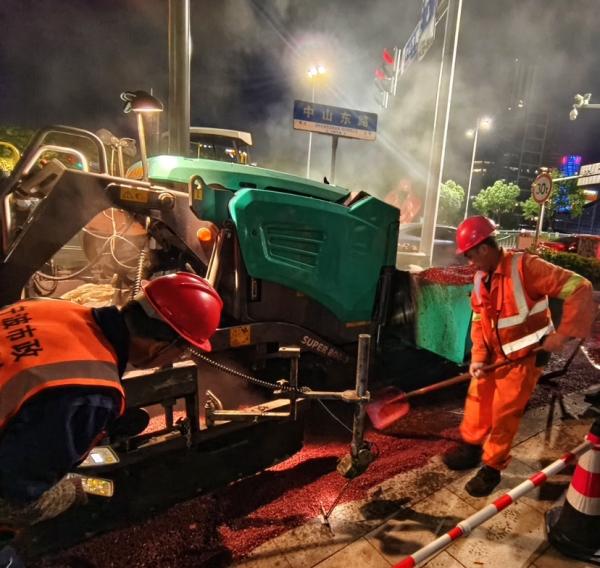 此次維修,城管市政部門主要是對這段路面進行大面積瀝青攤鋪改造,通過集中翻新為市民出行安全提供保障。城管市政部門告訴記者:“此次修復養護彩色瀝青是一種改性瀝青,相對傳統的瀝青路面新添加了橡膠、樹脂、高分子聚合物、磨細了的膠粉等改性劑,使瀝青的性能獲得改善。用它鋪筑的路面有優越的耐久性、抗磨性,高溫不容易軟化,低溫不易開裂。”特別值得一提的是,為了進一步延長瀝青路面使用壽命,市政部門還在銑刨后鋪設2mm厚的抗裂貼,進一步保障通行路面的穩定與健康。