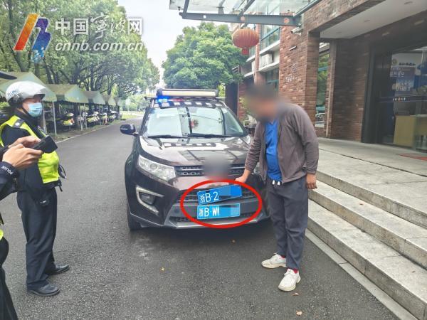 事情發(fā)生在4月22日。當(dāng)天下午3點(diǎn)50分許,在江北區(qū)河?xùn)|路上,交警開(kāi)展例行巡邏時(shí),發(fā)現(xiàn)一輛?吭诼愤叺能(chē)輛前后號(hào)牌不一致。