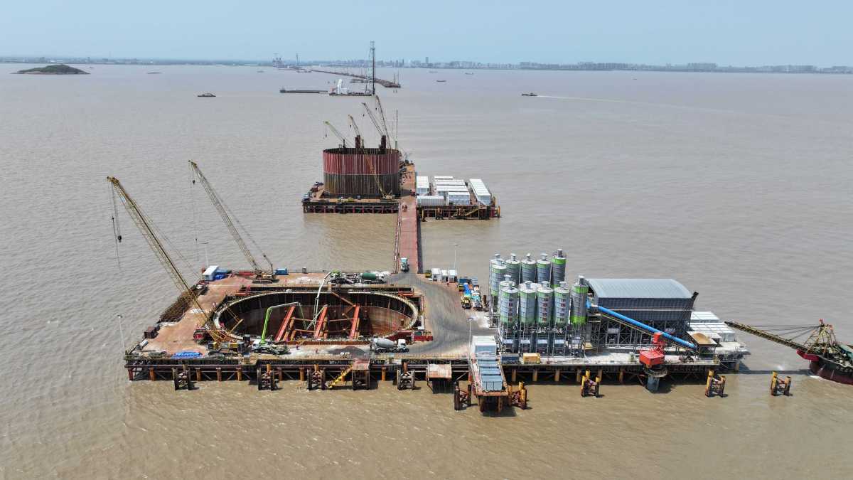 “施工區域離岸約7公里,根據交通管制要求,當風力達到8級及以上、能見距離不足1000米、波高大于2米等任意一種情況出現時,船舶都不能通行。再加上該海域潮汐現象顯著,潮水低會導致船舶靠不上碼頭;潮水漲得急、水流沖刷大的時候,船舶同樣無法通行。”中鐵大橋局杭州灣跨海鐵路橋二分部項目常務副經理洪海濤介紹,如何利用有限的窗口期,將1370余噸鋼筋及大量建筑材料高效運輸到施工現場,并確保各工序緊密銜接,成為承臺施工的最大挑戰。