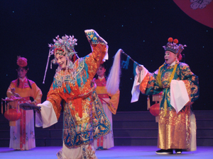 是的,紅花需要綠葉扶。如果沒有鎮(zhèn)海京劇聯(lián)誼會的票友為她配戲(2個太監(jiān)、8個宮女),這戲自然唱不成。而后來演出要把宮燈、掌扇、香爐、扶節(jié)等道具從鎮(zhèn)海運到寧波,是江東區(qū)文聯(lián)領導為他們解決了車輛問題。沒有道具,這戲也唱不成。