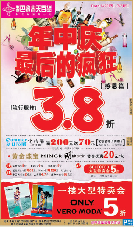 巴黎春天百貨6月29日-7月5日打折信息