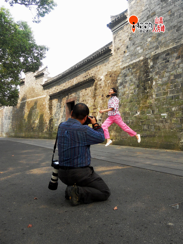 慈城,古鎮(zhèn)小巷,MM彈跳“飛”得辛苦,大師單腿跪膝拍得也賣(mài)力。這位MM很靚哦,有木有!