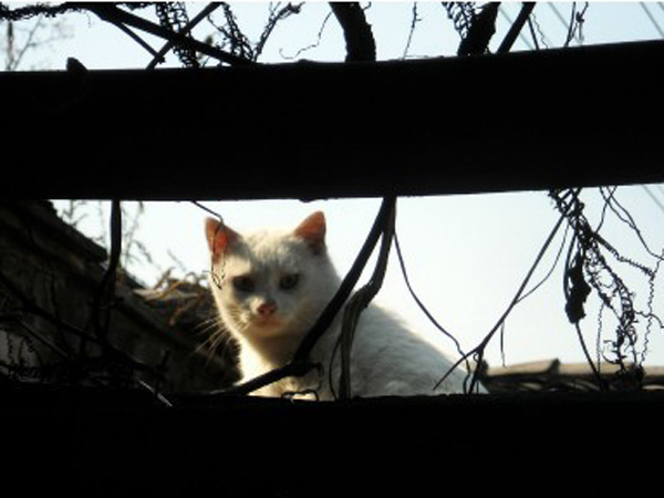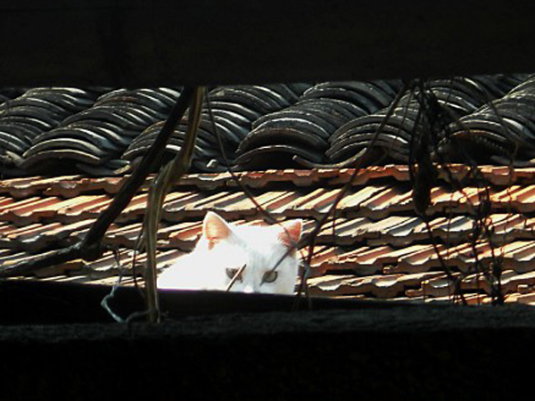 :屋檐外,曬太陽,“喵星人”一個回眸,眼神邈遠,警惕瞭望……