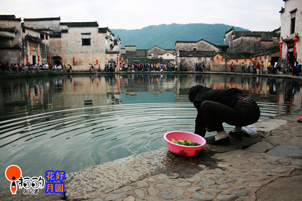 古村清早,一位大嬸正在村河邊清洗小菜,河水微波蕩漾,美麗如畫。于是,我立即按下了快門。