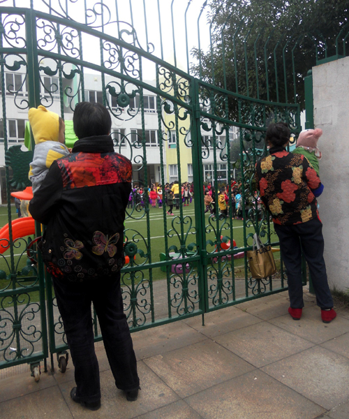 幼兒園里的燦爛童年,姥姥們抱著娃娃,站在門(mén)外觀望……有一天,娃娃們也將入園,走進(jìn)這片燦爛。