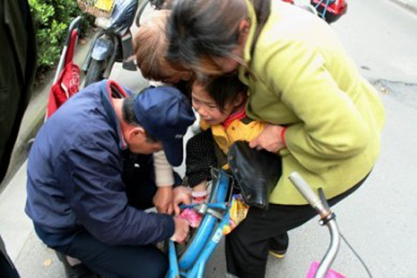 中國寧波網“i拍”記者山高人為峰:2013、4、2,天氣:多云,地點:中山路,故事:早晨8點20,一位騎自行車的媽媽送女兒去幼兒園的途中,小女孩坐在后座,不慎把腳夾進了自行車鋼圈里,過路人紛紛停下幫忙解救,大家齊心協力,五分鐘后,小女孩腳順利取出。結局:小女孩子腳無大傷,過路人各自上班去。2013留住寧波最美的瞬間:愛心甬城,愛在路上。