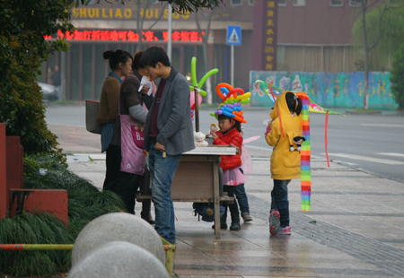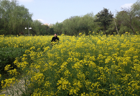 春陽暖暖,路邊午餐,味道不錯。嘿,哥們!給點吧,狗狗饞涎傷不起。