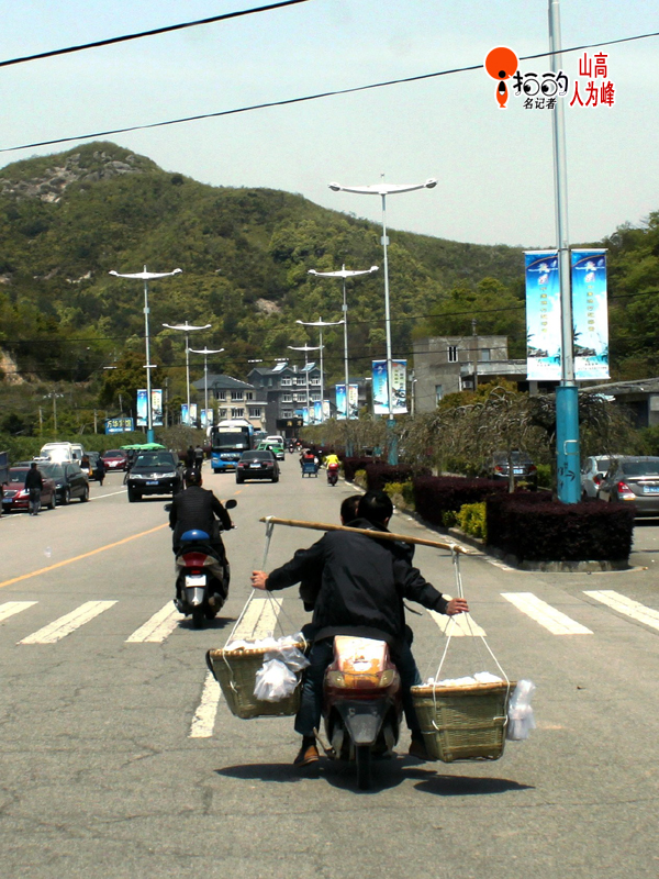 三月三,踏沙灘,通往“中國漁村”的路上,小商販電動車上挑著擔趕場做生意。車帶人,人挑擔,牛人也。