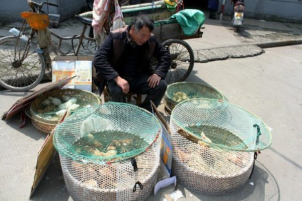 中國寧波網“i拍”記者山高人為峰:2013、4、25,晴到多云。按照省政府和市政府有關的通知要求,切實做好H7N9防范工作,甬城今起關閉活禽市場,暫停活禽交易。慈城菜城路邊,還有養殖主,在守賣著“雞仔、鴨仔”。