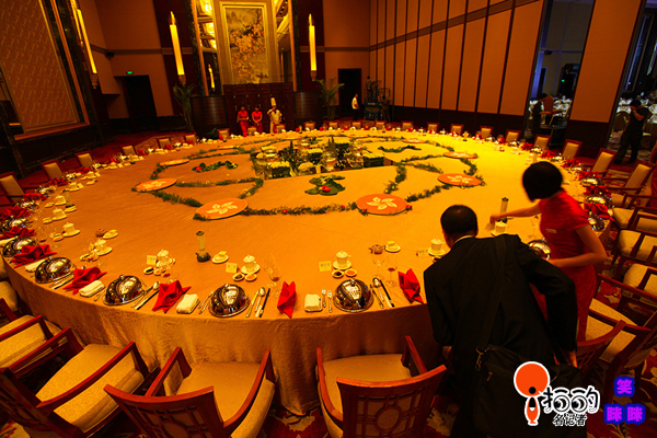 中國寧波網(wǎng)“i拍”記者笑瞇瞇:這樣的大桌你見過嗎?用較廣的鏡頭將畫面元素納入完整大場面。畫面中有一人上前仔細(xì)看,相信這個人的姿態(tài)一定代表了很多觀者,這是一頓怎樣的宴請?(拍攝于香格里拉大酒店)