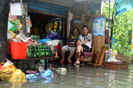 臺風“菲特”過后,甬城一片汪洋。暴雨把橋洞變成了“池塘”,給每日在此出行的人們造成嚴重影響。