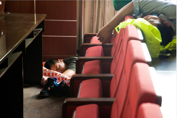 2013.10.11,救助余姚的部隊戰士,已經累得倒地就睡著了。