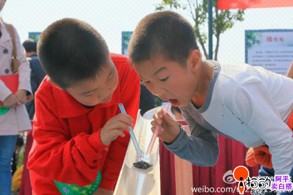 甲魚賽跑比賽,兩個(gè)小朋友用吸管吹幫助甲魚跑得更快。10月27日拍于鄞州。