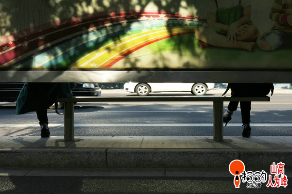 寂寞的公交小站并不孤獨,二個女人,看車來畫往......