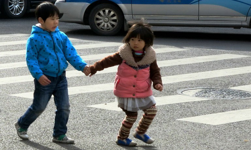 大街上車來車往,哥哥不哭,妹妹帶你過馬路......爸爸媽媽們,你們去哪兒了。