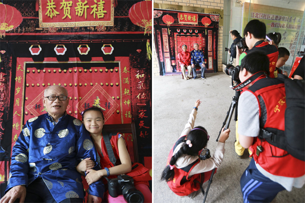5月25日上午,寧波市青少年宮“紅領巾攝美團”10多位小朋友在朱盛珊老師的帶領下來到江北區廣廈怡庭社區為老人們拍金婚紀念照,度過了愉快而有意義的一天!