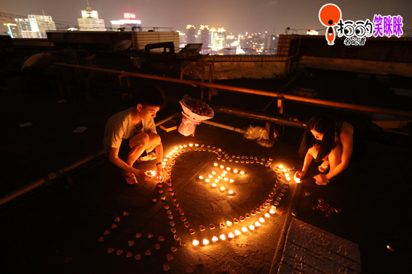 中國寧波網“i拍”記者笑瞇瞇:昨晚19點左右,我和幾位攝友在天之海大廈拍夜景。不知不覺天色已暗,我們正準備收拾回家,發現一小伙子正在屋頂用蠟燭擺放一個浪漫的“心型”,邊上有一捧大大的玫瑰花。