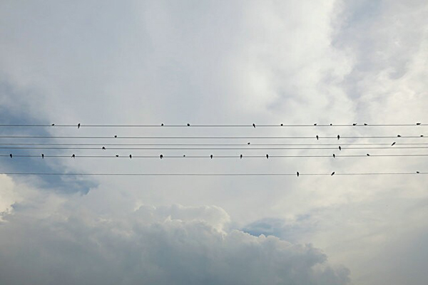 天空中,五線譜,秋天里,燕奏響,多云日,交響曲。