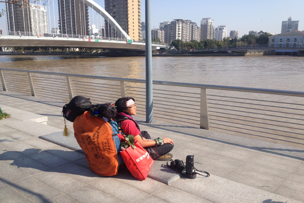 在我離開的時候,他說:“我覺得,現在每一次呼吸都是一種幸福!”走遠后我又回過頭,發現他身上帶著一種獨特的能量正在“閃閃發光”!我喊了一句:“下一站去哪?”他又笑:“上海!”