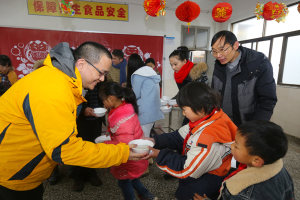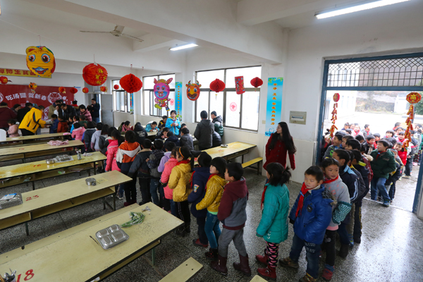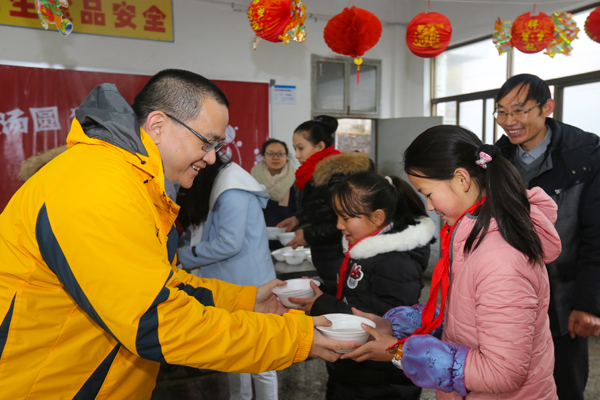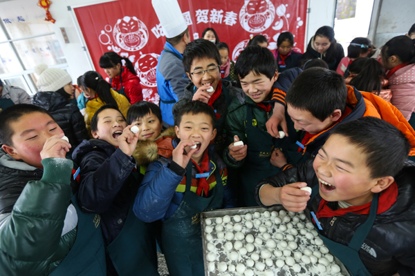 中國寧波網(wǎng)“i拍”記者竺仕寶:今早,四明山鎮(zhèn)小學(xué)來了一群愛心義工,他們千里迢迢驅(qū)車趕到老區(qū)。來自香格里拉大酒店的義工們帶來了制作湯圓的材料糯米粉、白糖、芝麻與山里的孩子們一起搓湯圓吃湯圓,提前感受濃濃的年味。