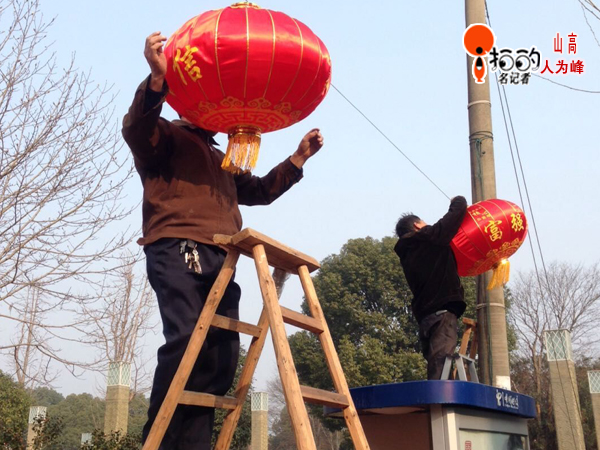 街頭巷尾有風(fēng)景,登高忙碌掛紅燈,大紅燈籠盼吉祥,紅紅喜慶過年。
