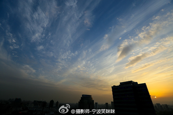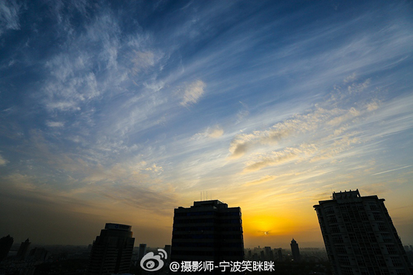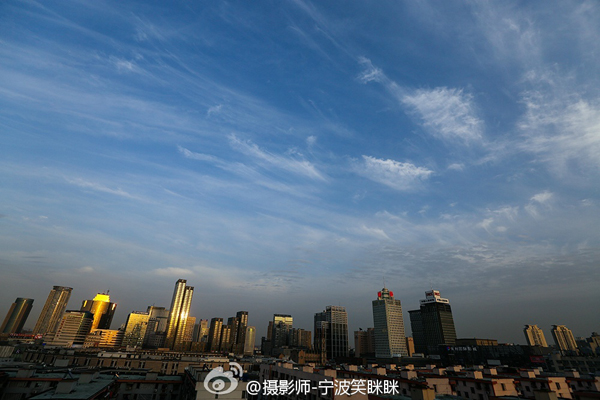 中國(guó)寧波網(wǎng)“i拍”記者笑瞇瞇:傍晚日落時(shí)分,寧波高空明麗的蔚藍(lán)色,流動(dòng)的云朵在空中隨風(fēng)翩翩起舞,時(shí)而金黃,時(shí)而潔白,時(shí)而象火一樣紅,很少看見(jiàn)這么美的天空。