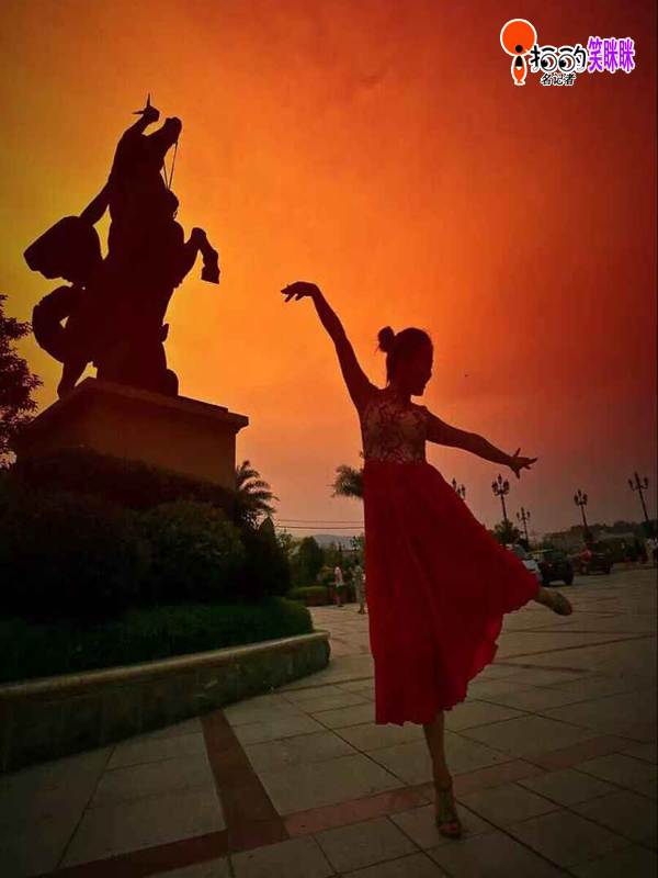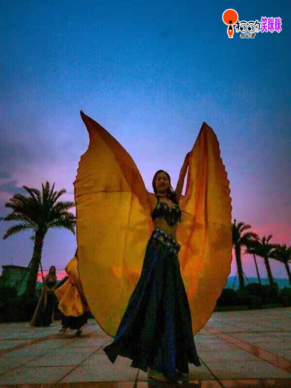 夕陽下,鄞江納涼晚會上姑娘們翩翩起舞。
